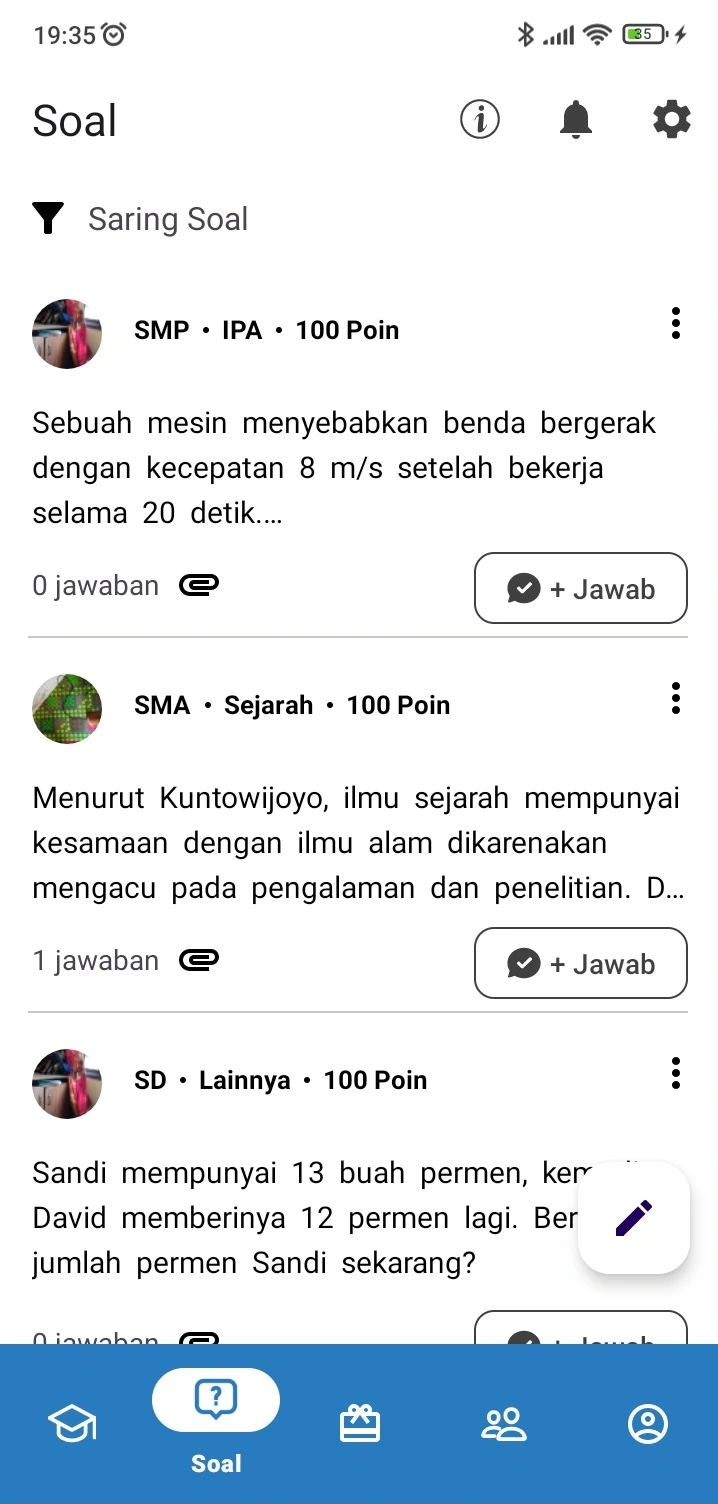 Kamu bisa mengajukan soal atau menjawab soal dan dapatkan hadiah menarik.